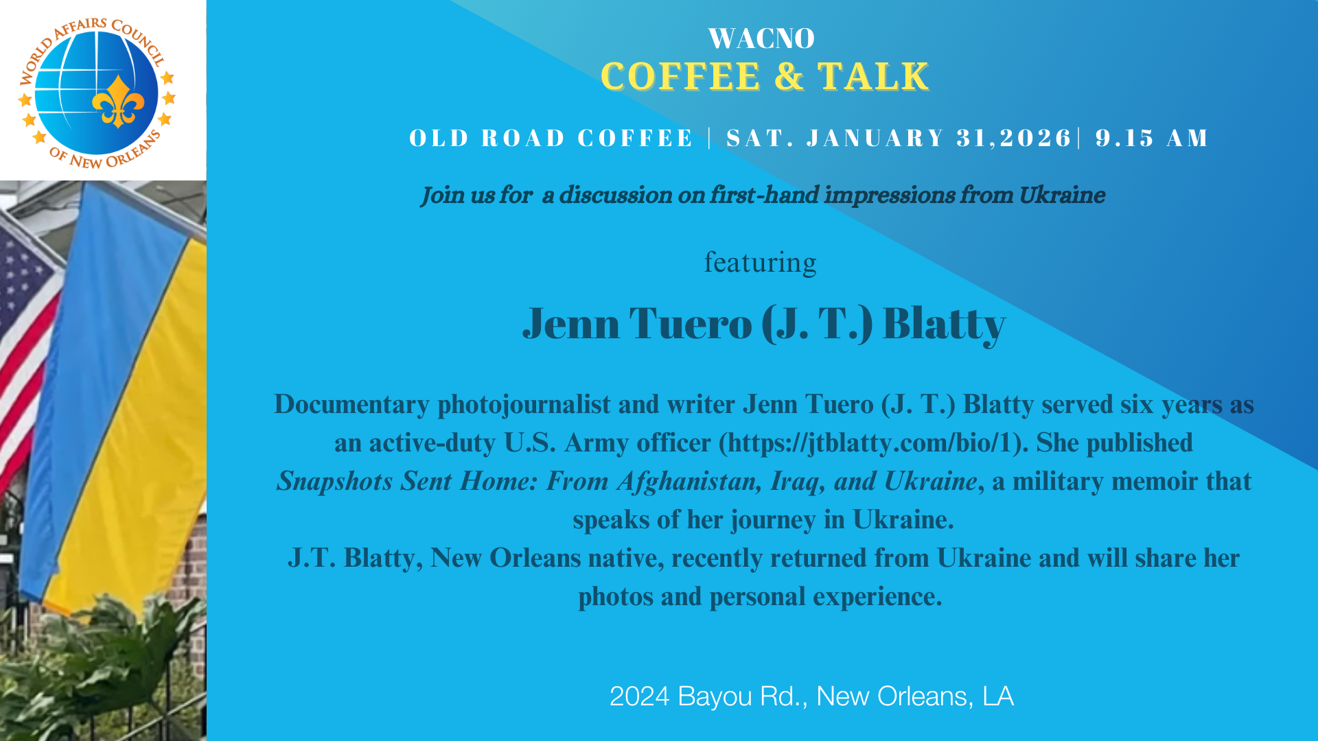 The World Affairs Council of New Orleans (WACNO) mission is to deepen the local community’s global perspective and foster cross-cultural understanding through education, dialogue, and active engagement in discussion.